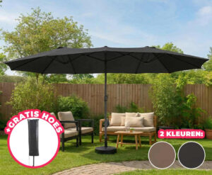 Informatie Dubbele Parasol Incl. GRATIS Hoes t.w.v 34,95 Deze dubbele parasol zorgt in één klap voor een groot, verkoelend schaduwoppervlak. Perfect voor lange zomerdagen in…