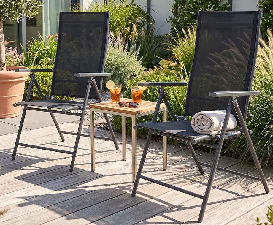 Deze moderne vouwstoelen van Ambiance in stijlvol donkergrijs passen moeiteloos in elke tuin, balkon of terras. Het tijdloze design zorgt voor een rustige uitstraling, terwijl het stevige frame direct vertrouwen geeft.