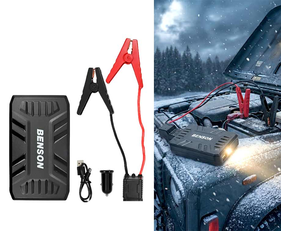 Altijd klaar voor noodgevallenDeze Benson auto-accu-startbooster is speciaal ontworpen om voertuigen met een lege accu direct weer te starten. Geen stress langs de weg, maar in een paar tellen weer onderweg.