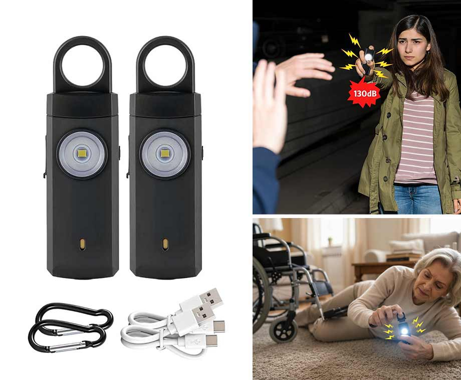 Altijd een veilig gevoel op zak met dit compacte veiligheidsalarm met 130 dB sirene en felle LED-stroboscoop. Makkelijk te activeren en perfect voor onderweg.